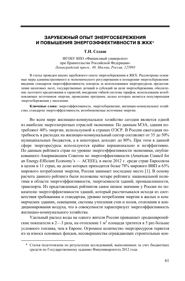 Опыт энергосбережения