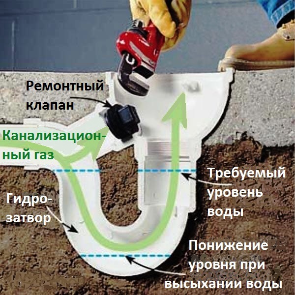 - Неисправность гидрозатвора: Гидрозатвор (сифон) – это U-образная труба, заполненная водой, которая предотвращает проникновение канализационных газов в помещение. Если гидрозатвор поврежден, засорен или пересох, он перестает выполнять свою функцию.