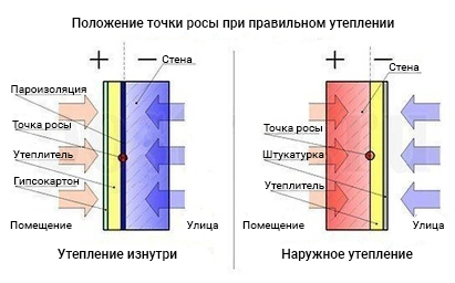 Утепление снаружи – более предпочтительный вариант, чем утепление изнутри. При утеплении снаружи точка росы смещается за пределы несущей стены, что снижает риск образования конденсата внутри конструкции. Кроме того, наружное утепление позволяет сохранить полезную площадь внутри дома.